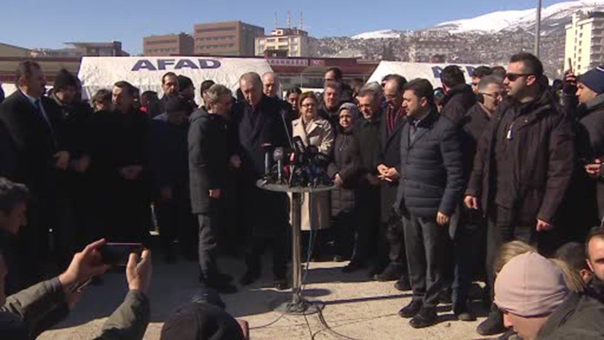 Cumhurbaşkanı Erdoğan, 10 ilde büyük yıkıma yol açan 7.7 ve 7.6 büyüklüğündeki depremlerin merkezi Kahramanmaraş’ı ziyaret etti. Erdoğan, 12 Şubat Stadyumunda oluşturulan çadırkentte depremzedelerle bir araya geldi. Erdoğan burada yaptığı açıklamada, “Deprem felaketi malum 10 vilayetimizi vurdu. Bu 10 vilayetimizin merkezi de burası Kahramanmaraş’tı. Kahramanmaraş’ta depremin ilk adımını buradan yaşadık ve ondan sonra da dalga dalga malum 10 vilayetimizde bu gerçekleşti. Şu an itibarıyla ne yazık ki vefat edenlerin sayısı 8 bin 574. Yaralı sayısı 49 in 133.