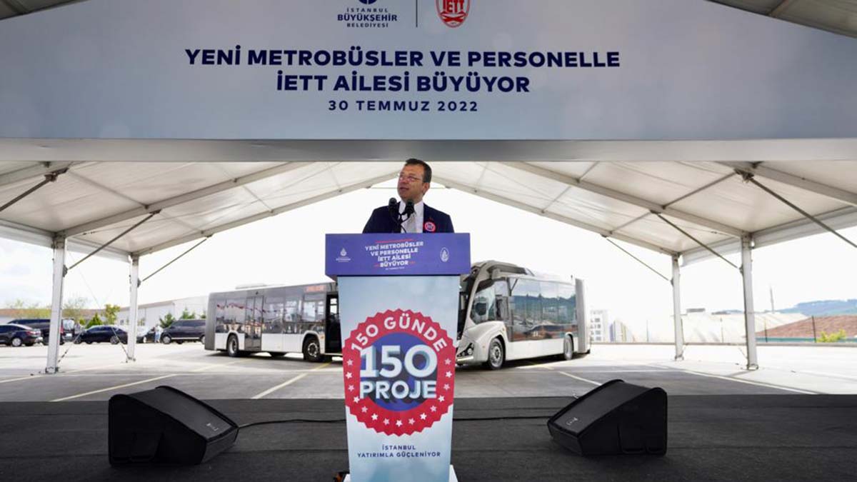 İstanbul Büyükşehir Belediye (İBB) Başkanı Ekrem İmamoğlu, 100 yeni metrobüsün hizmete alım törenine katıldı.