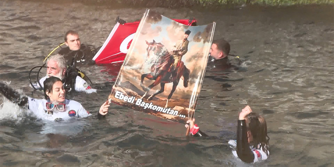 İstanbul, Van, Edirne, Elazığ, Diyarbakır ve Ankara’da bir akvaryum başta olmak birçok noktada gerçekleştirilen dalış etkinliklerine Azerbaycan, Makedonya, Kuzey Kıbrıs Türk Cumhuriyet’inden gönüllüler de eşlik etti. 134 farklı noktada gerçekleştirilen dalış etkinliğine serbest dalış rekortmeni Yasemin Dalkılıç’ın Amerika Birleşik Devletleri Florida eyaletinden katıldığı da öğrenildi. Dolmabahçe Sarayı önünde gerçekleştirilen dalış etkinliğine eski Devlet Bakanı Kürşat Tüzmen de katıldı. Su altında ve üstünde Türk bayrağı ve Atatürk posteri açan dalgıçlar İstiklal Marşı ve Atatürk’ün Gençliğe Hitabe’sini okudu.Dolmabahçe Sarayını ziyaret eden yerli ve yabancı turistler ise o anları görüntüledi.