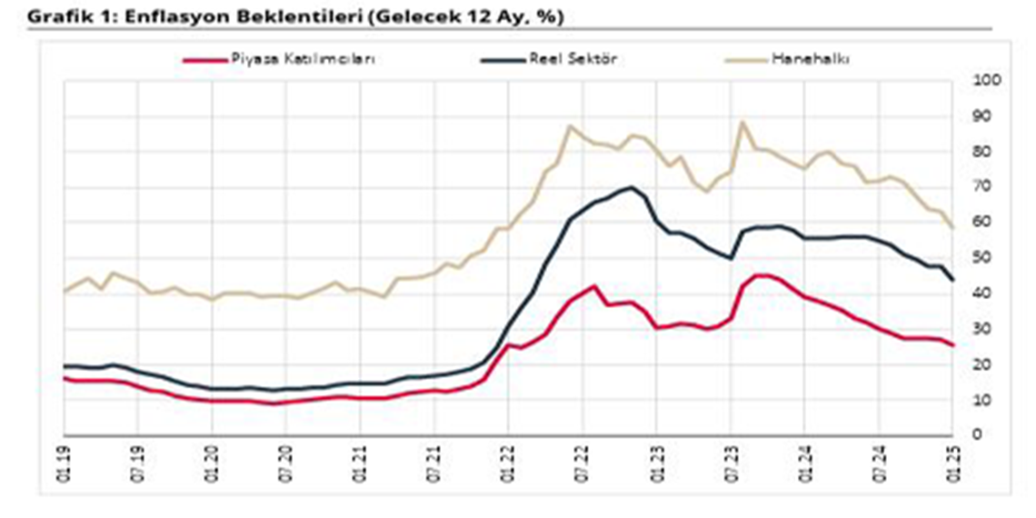 Türkiye Cumhuriyet Merkez Bankası (TCMB) duyurdu; 12 ay sonrası enflasyon beklentileri ocak ayında geriledi.