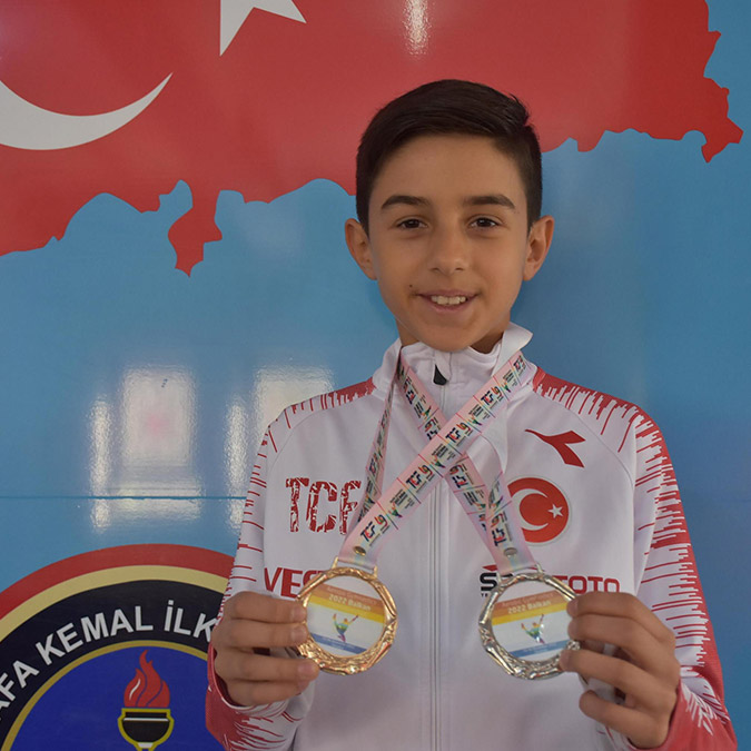 İzmir’in Menderes ilçesinde, Görece Mustafa Kemal Ortaokulu’nda eğitim gören 7’nci sınıf öğrencisi Deniz Öztürk (12), Aerobik Cimnastik Balkan Şampiyonası’ndan çifte madalya ile döndü.