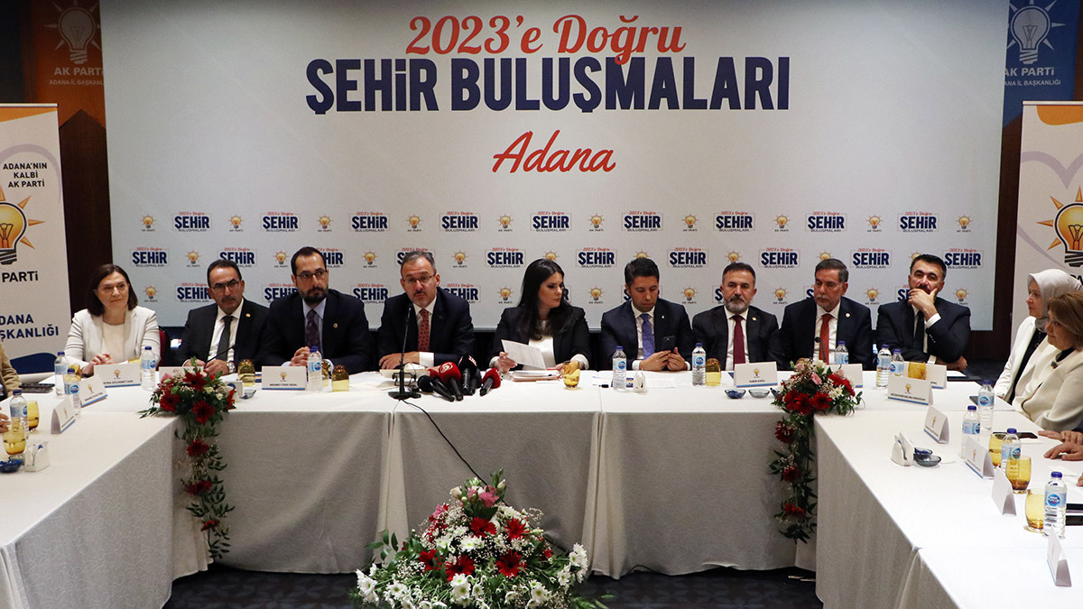 AK Parti Adana İl Başkanlığı’nın ev sahipliğinde, ‘2023’e Doğru Şehir Buluşmaları’ programı kapsamında, kentteki bir otelde toplantı düzenlendi. Toplantıya, Gençlik ve Spor Bakanı Mehmet Muharrem Kasapoğlu, AK Parti Genel Başkan Yardımcısı Jülide Sarıeroğlu, AK Parti MKYK üyeleri, AK Parti Adana İl Başkanı Mehmet Ay ve bölge milletvekilleri katıldı. AK Parti Genel Başkan Yardımcısı Jülide Sarıeroğlu, yaz döneminde çok verimli çalışma programı yaptıklarını, şu ana kadar 40 ilde buluşma toplantıları gerçekleştirdiklerini belirtti. Parti olarak halkla daima temasta olduklarını anlatan Sarıeroğlu, Adana’da da kapsamlı bir buluşma yaptıklarını söyledi.