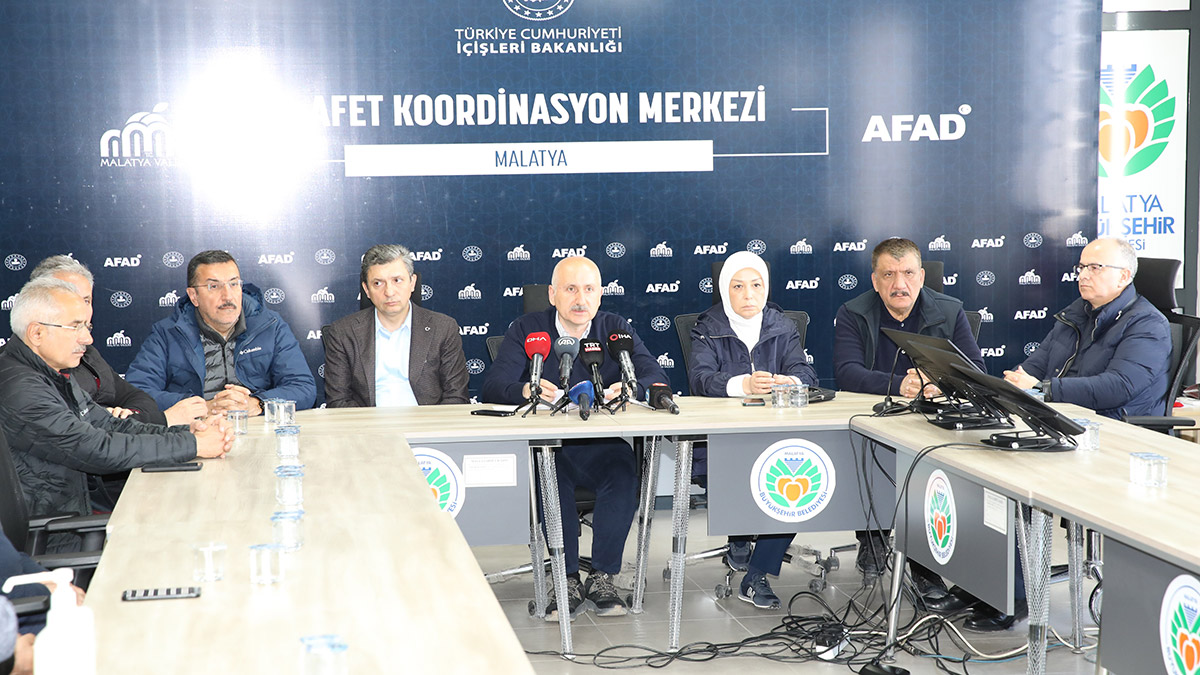 Ulaştırma ve Altyapı Bakanı Adil Karaismailoğlu, Kahramanmaraş merkezli depremlerin vurduğu Malatya’da incelemelerde bulundu. Afet Koordinasyon Merkezi’nde yürütülen çalışmalara ilişkin bilgi alan Bakan Karaismailoğlu, daha sonra gazetecilere açıklama yaptı.