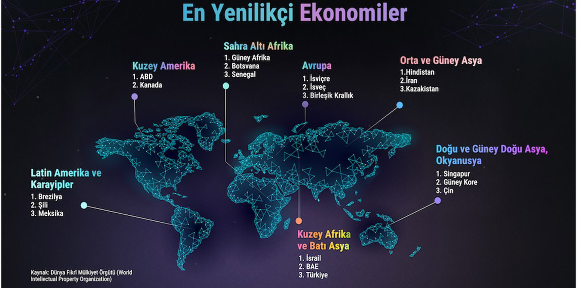 Geçen yıl Dünya Fikri Mülkiyet Örgütü’nün (WIPO-World Intellectual Property Organization) yayınladığı Küresel İnovasyon Endeksi, bilim yatırımları, teknolojik ilerleme, teknolojinin benimsenmesi ve sosyoekonomik etki gibi 4 ana metrikle 132 ülkenin listeledi. Zirvede İsviçre 67,6’lık puanla bayrağı yine elinde tutuyor. 2023’teki ilerlemesiyle önceki yıla kıyasla ABD’yi bir basamak geride bırakan İsveç de 64,2 ile ikinci olarak konumlanıyor. Onları Birleşik Krallık, Singapur ve Finlandiya takip ediyor.