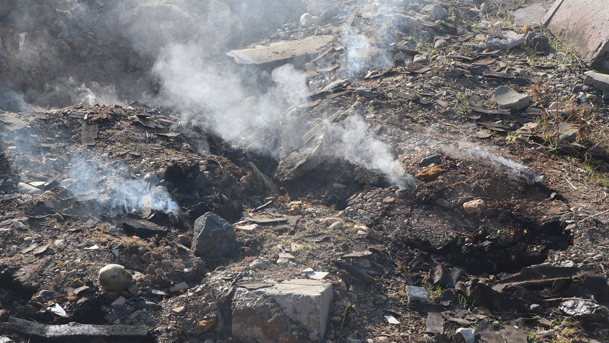 Bunlar cam elyaf kökenli veya asbest kökenli de olabilir. Buralardan numuneler aldık. Bu numuneleri ayrıca araştıracağız. Bunların ateş yakma sonucunda basit bir kıvılcım almasından dolayı yanarak bu dumanları çıkarttığını ön verilere göre kanaat getirdik. Bu dumanların, insan vücuduna zarar veren kokulu duman çıkarıp yaydığı için bir an önce bertaraf edilmesi gerektiğini düşünüyoruz. Dolayısıyla bu temelin dibinde ne kadar katı atığın olup olmadığının tespit edilip bir an önce imha edilmesi lazım. Bu içten yanmanın bitmesi de bulunan katı atığın miktarına göre değişecektir. Eğer katı atığın kapladığı yer fazla ise dumanın yayılması da daha fazla sürecek. İnsan sağlığı açısından zararlı bir gaz içermektedir. Atıklar kimyasal maddeler içermektedir” ifadelerini kullandı.