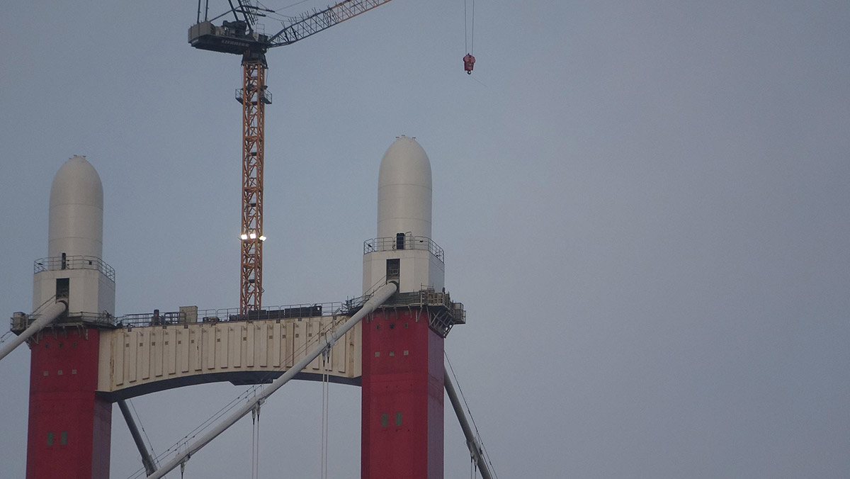 Köprünün projesinde yer alan ve kalıcı çelik imalatını sağlayan firmanın imal ettiği, Seyit Onbaşı’nın sırtında taşıdığı top mermisini sembolize eden, her biri 75 ton ağırlığında ve 20,5 metre yüksekliğindeki 4 top mermisi figürü de mart ayında şirkete ait ‘GMK-1’ isimli gemiyle Gelibolu Sütlüce’deki şantiye alanına getirildi. Top mermisi figürlerinin, köprünün Asya ve Avrupa yakasında 318 metre uzunluğundaki kulelerine yerleştirilmesi için 19 Kasım’da çalışma başlatıldı. 2 top mermisi figürü, 25 Kasım’da yerleştirildi. Kalan 2 figürü yerleştirme çalışmaları ise 6 Aralık’ta tamamlandı.