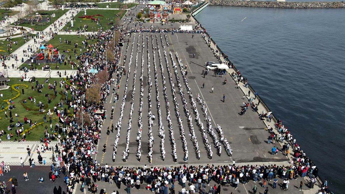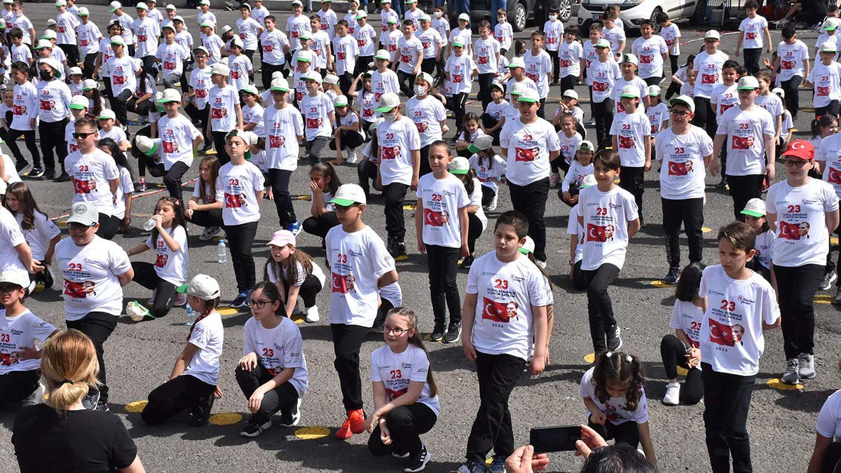 Tekirdağ’da 23 Nisan Ulusal Egemenlik ve Çocuk Bayramı etkinlikleri kapsamında 1920 öğrenci, TBMM’nin açılışının 102’nci yılını Trakya halayı çekerek kutladı.