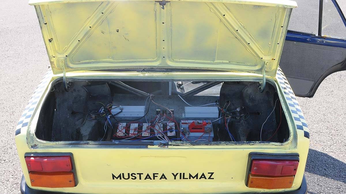 “Aracın hurdadan alınması haricinde üzerinde yapılan bütün modifikasyonlar bizim özgün çalışmamız oldu. Burada çok olumlu tepkiler de bizim için çok güzel oldu. Aracı yarışma konseptine uydurabilmek için sanayide aylarımızı harcadık. Aracın ilk olarak direksiyonunu ayırdık. Daha sonra araçtaki motor ve şanzımanı söktük. Çünkü elektrikli bir proje olacaktı. Aracın üzerindeki içten yanmalı motoru kullanmayacağımız için ağırlık yapmasını istemedik.