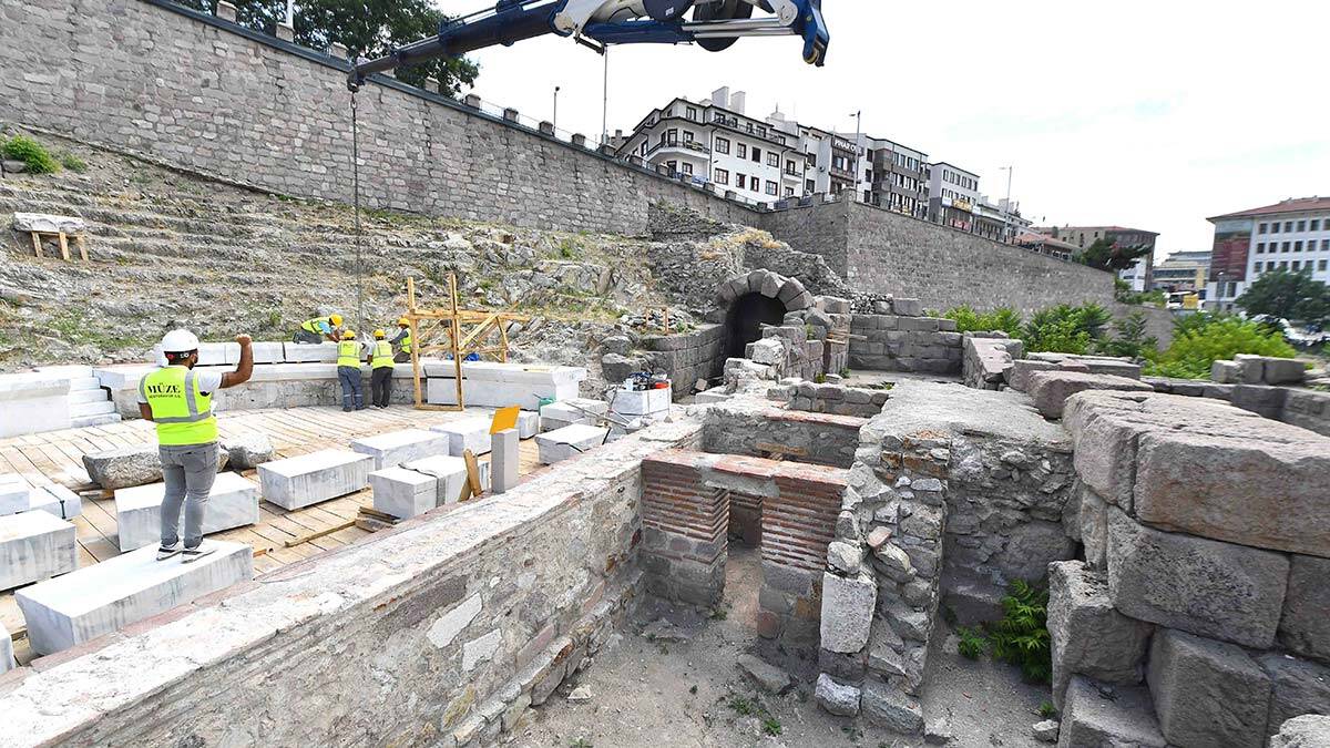 Ankara Büyükşehir Belediyesi tarafından başlatılan “Ankara Roma Tiyatrosu ve Arkeopark Projesi” hızla ilerliyor. Oturma basamaklarının (1. Cavea) yerleştirildiği tiyatroda orijinal dokuyu koruyarak restore işlemi yapıldığını belirten Büyükşehir Belediye Başkanı Mansur Yavaş sosyal medya hesapları üzerinden yaptığı paylaşımda, “Ankara’mızın köklü geçmişini koruyor, kültürel mirasa sahip çıkıyoruz. 2 bin yıllık Ankara Roma Tiyatrosu’nu Cumhuriyetimizin 100. yılında başkent turizmine kazandıracağız” dedi.