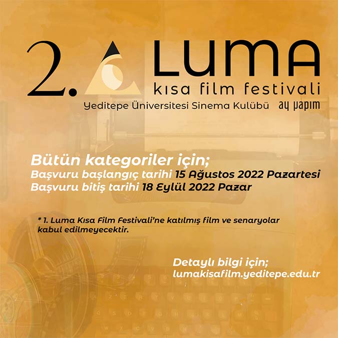 Yeditepe Üniversitesi Sinema Kulübü ve Ay Yapım’ın, hayal ettiği film projelerini gerçekleştirmek isteyen yetenekli gençleri desteklemek amacıyla düzenlediği Luma Kısa Film Festivali’nin ikincisi, 24-27 Ekim tarihleri arasında gerçekleştirilecek.