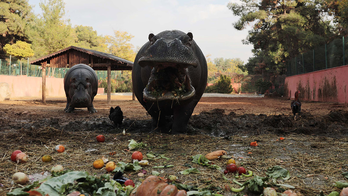 Çünkü bu hayvanların derilerinin altındaki yağ tabakalarının üşümemeleri için artması lazım. Bu yağ oranlarını artırmak için hem enerji verecek hem de yağ tabakası oluşturacak besinlerle kendilerini besliyoruz. Her hipopotamımız günde yaklaşık olarak 50 kilo meyve ve sebze tüketiyor. Bu hayvanlarımıza ayrıca enerjilerini yüksek tutmak için kuru incir, yonca, üzüm ve keçiboynuzu takviyesi yapıyoruz.”