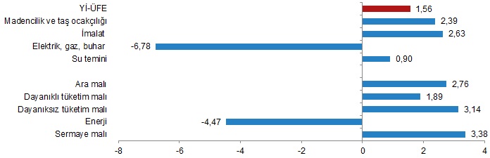 Sanayinin 4 sektörünün yıllık değişimleri; madencilik ve taş ocakçılığında yüzde 93,92, imalatta yüzde 65,68, elektrik, gaz üretimi ve dağıtımında yüzde 152,11 ve su temininde yüzde 103,60 artış olarak gerçekleşti. Ana sanayi gruplarının yıllık değişimleri; ara malında yüzde 57,05, dayanıklı tüketim malında yüzde 60,34, dayanıksız tüketim malında yüzde 92,95, enerjide yüzde 129,50 ve sermaye malında yüzde 58,04 artış olarak gerçekleşti. Sanayinin 4 sektörünün aylık değişimleri; madencilik ve taş ocakçılığında yüzde 2,39 artış, imalatta yüzde 2,63 artış, elektrik, gaz üretimi ve dağıtımında yüzde 6,78 azalış ve su temininde yüzde 0,90 artış olarak gerçekleşti. Ana sanayi gruplarının aylık değişimleri; ara malında yüzde 2,76 artış, dayanıklı tüketim malında yüzde 1,89 artış, dayanıksız tüketim malında yüzde 3,14 artış, enerjide yüzde 4,47 azalış ve sermaye malında yüzde 3,38 artış olarak gerçekleşti.