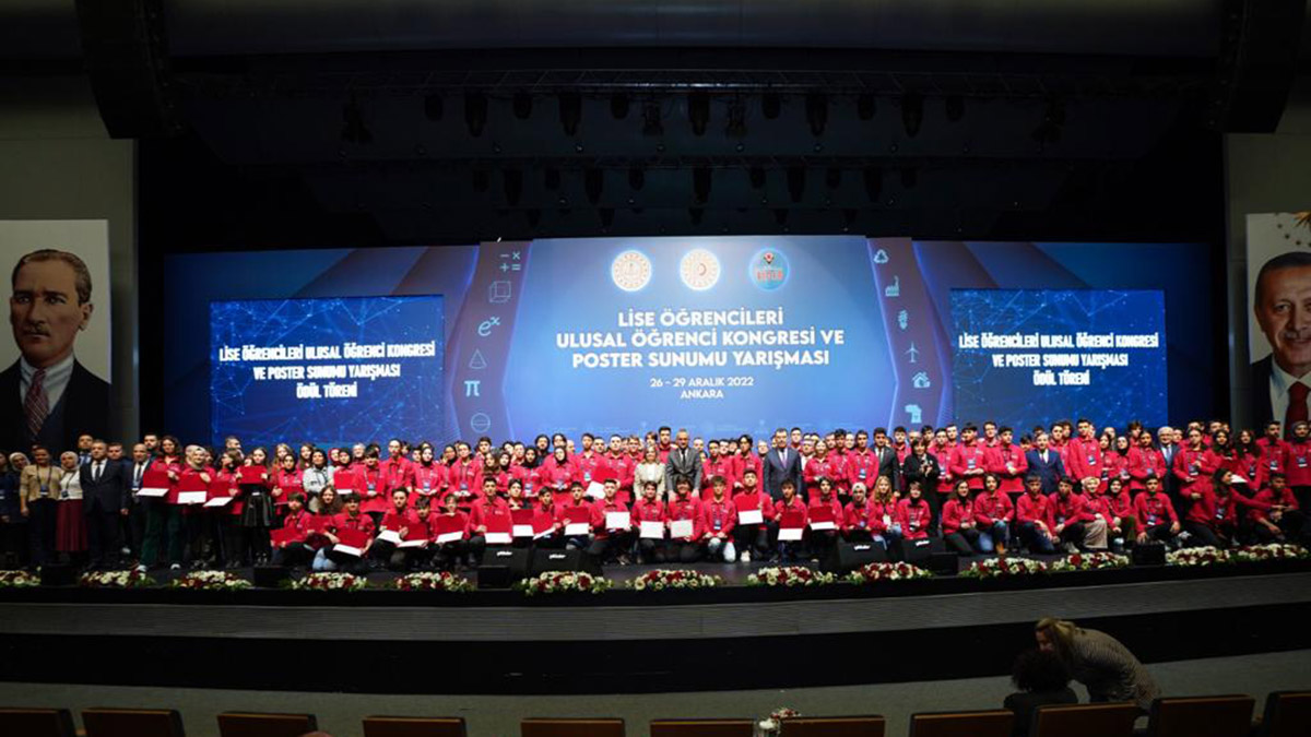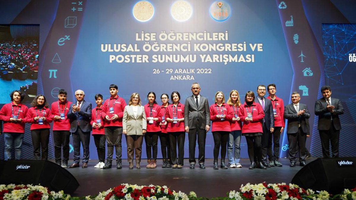 Bakan Özer, Ankara Ticaret Odası Fuar ve Kongre Merkezi’nde ‘Lise Öğrencileri Ulusal Öğrenci Kongresi ve Poster Sunumu Yarışması’nın ödül törenine katıldı. Törende Özer’in yanı sıra Türkiye Bilimsel ve Teknolojik Araştırma Kurumu (TÜBİTAK) Başkanı Hasan Mandal, bürokratlar, öğretmenler ve öğrenciler de yer aldı. 337 okuldan 1213 öğrencinin 489’u çevre ve iklim değişikliği, 177’si matematik alanında olmak üzere toplam 666 proje ile başvurduğu yarışmada TÜBİTAK seçici kurulunca ön değerlendirme yapıldı. Poster sergisine 98 proje davet edildi ve finalde çevre ve iklim değişikliği ile matematik alanında 15’er proje yarıştı. Yarışmada dereceye giren lise öğrencileri, ödüllerini Milli Eğitim Bakanı Özer’in elinden aldı.