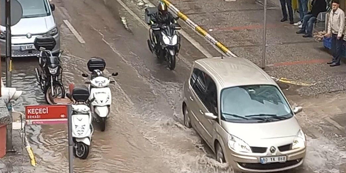 Balıkesir’de 15 dakikalık sağanak, yolları göle çevirdi
