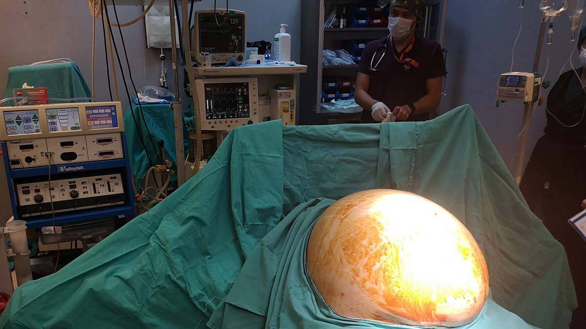 25 yaşındaki kadın, şişkinlik şikayeti için başvurmuştu; yumurtalıklarında tümör tespit edilirken; 20 kiloluk tümörü alındı