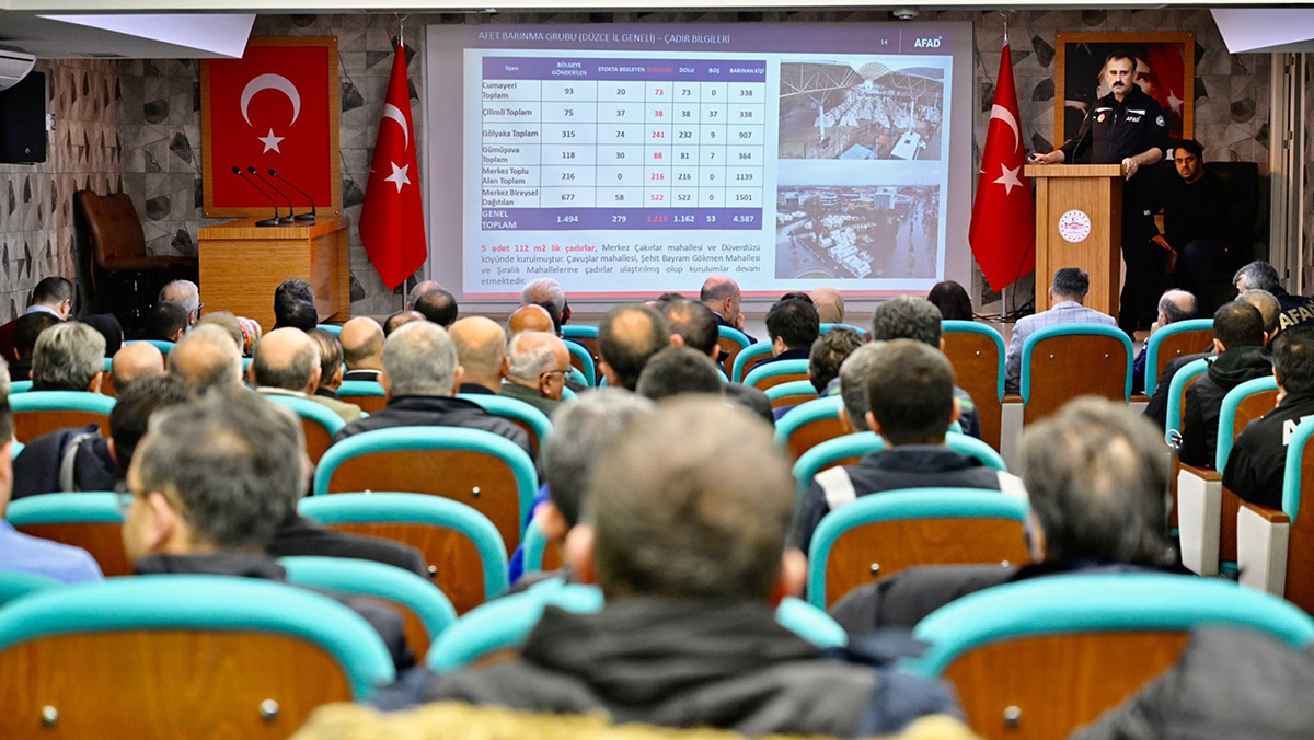 Bu zaman diliminden itibaren devletin bütün kurum ve kuruluşlarıyla birlikte, Düzceli vatandaşlarımızla birlikte, Düzce’deki kurum ve kuruluşlarla birlikte yaşanan bu depremden sonraki hem karşı karşıya kaldığımız durumun rehabilitasyonu, özellikle depremin yol açtığı zararların tespiti ve bu konuda atılacak adımların değerlendirilmesi üzerine Düzce’deyiz.