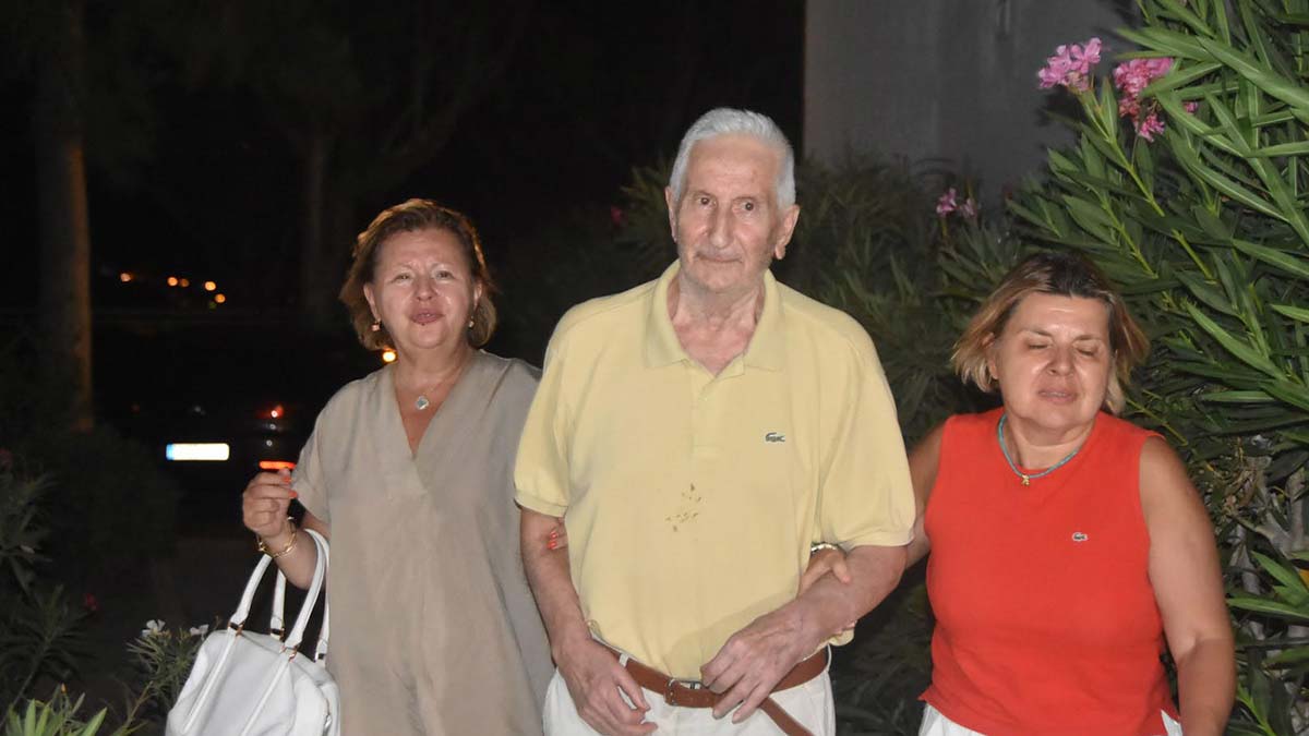 Yürümekte güçlük çektiği görülen Çevik Bir, ailesiyle birlikte eve girmeden gazetecilere el salladı.