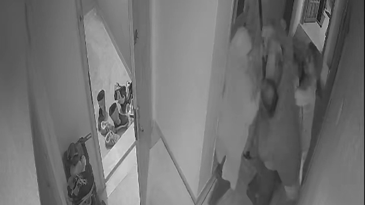 Eşine saldıran S.G.’nin aynı binada yaşayan annesi, kız kardeşi ve komşularının yardımıyla evden uzaklaştırılmaya çalışıldığı anlar da görüntülerde yer aldı. Görüntülerde; S.G. ve evdekiler arasında bir süre arbede yaşandığı, daha sonra Ç.G. ve beraberindekilerin dışarı çıktığı görüldü. Sonrasında S.G.’nin eline aldığı satırla duvarlara vurduğu anlar da görüntülere yansıdı.