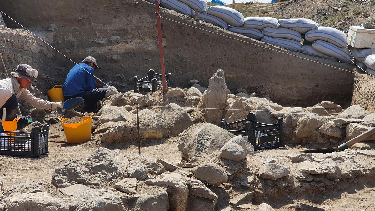 “Bu seneki amacımız, tespit ettiğimiz arkeolojik dönemlere ilişkin daha detaylı bilgilere ulaşmak oldu. Bölgede M.Ö. 4’üncü binyıl ortalarından 2’nci binyıl ortalarına kadar varlığı bilinen ve ‘Karaz Kültürü’ adı verilen Tunç Çağı kültürünün sağlam ve net mimari izleri bu seneki çalışmalarla ortaya konmaya başladı. Erken Tunç Çağı’ndan Orta Tunç Çağı’na geçiş sürecinde yaklaşık olarak M.Ö. 2 bin 500- 2 bin 300 yıllarında Anadolu’nun diğer kesimlerinde olduğu gibi Erzurum bölgesinde de sosyoekonomik anlamda dinamik bir sürece işaret eden taş temellerinin açığa çıkardığımız mimari izlere ulaştık.