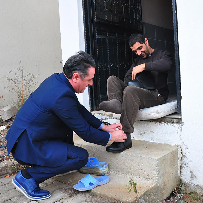 Sedat’ın bir anda koşarak sahalara çıkması kolay durmuyor. Sedat’ın hiç ayakkabı giymediği hakikati var ortada. Ayak dik durduğu için ayakkabı giymesi mümkün değildi. Annesi sağ olsun oğlu için terlik yapmıştı. 30 yıldır terlikle dolaşmış. Hayırseverlerin katkısıyla özel bir ayakkabı yaptık. İnşallah uzun yıllar kullanacak. Hiç ayakkabı kullanmadığı ve basmadığı için bir ayağı 6 santimetre kısa kalmış. O nedenle ayağa uygun 6 santimetre yükseklikte ortopedik bir ayakkabı yaptırdık. Böylece kısa ayağını diğeriyle eşitledik. Basıp ayağını güçlendirirse, tam istediğimiz hale gelecek” diye konuştu.