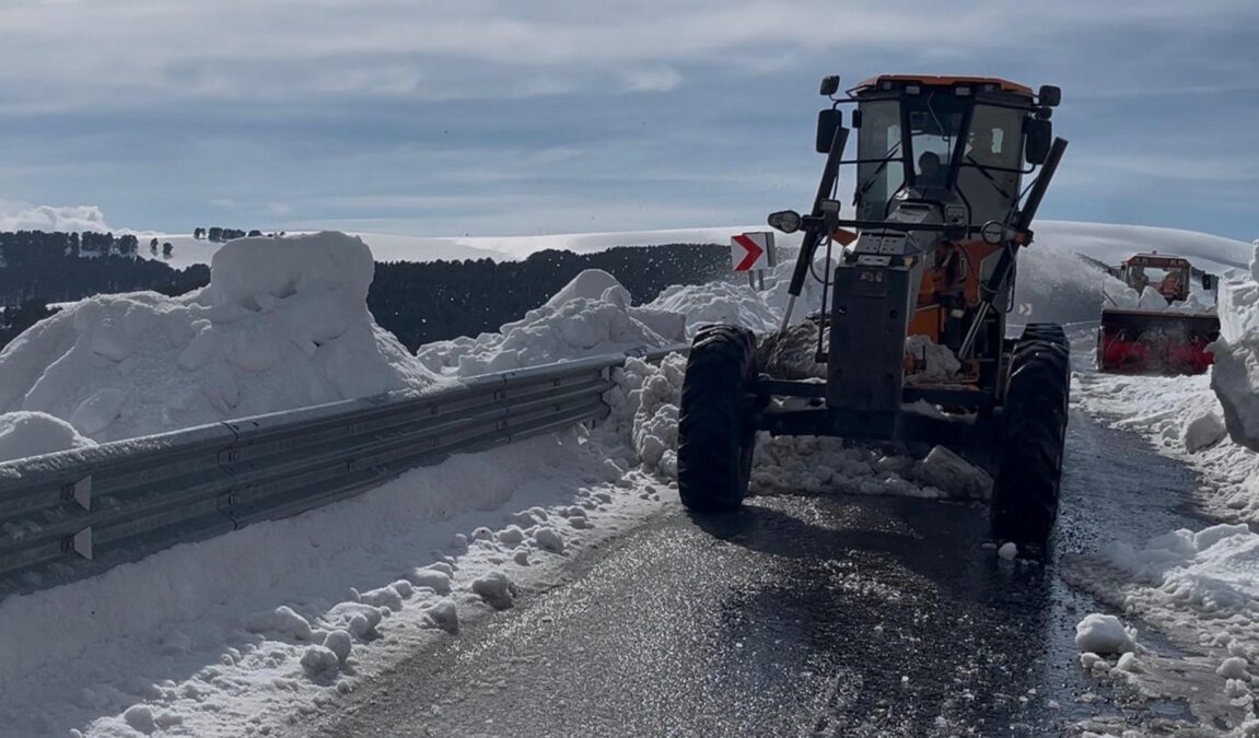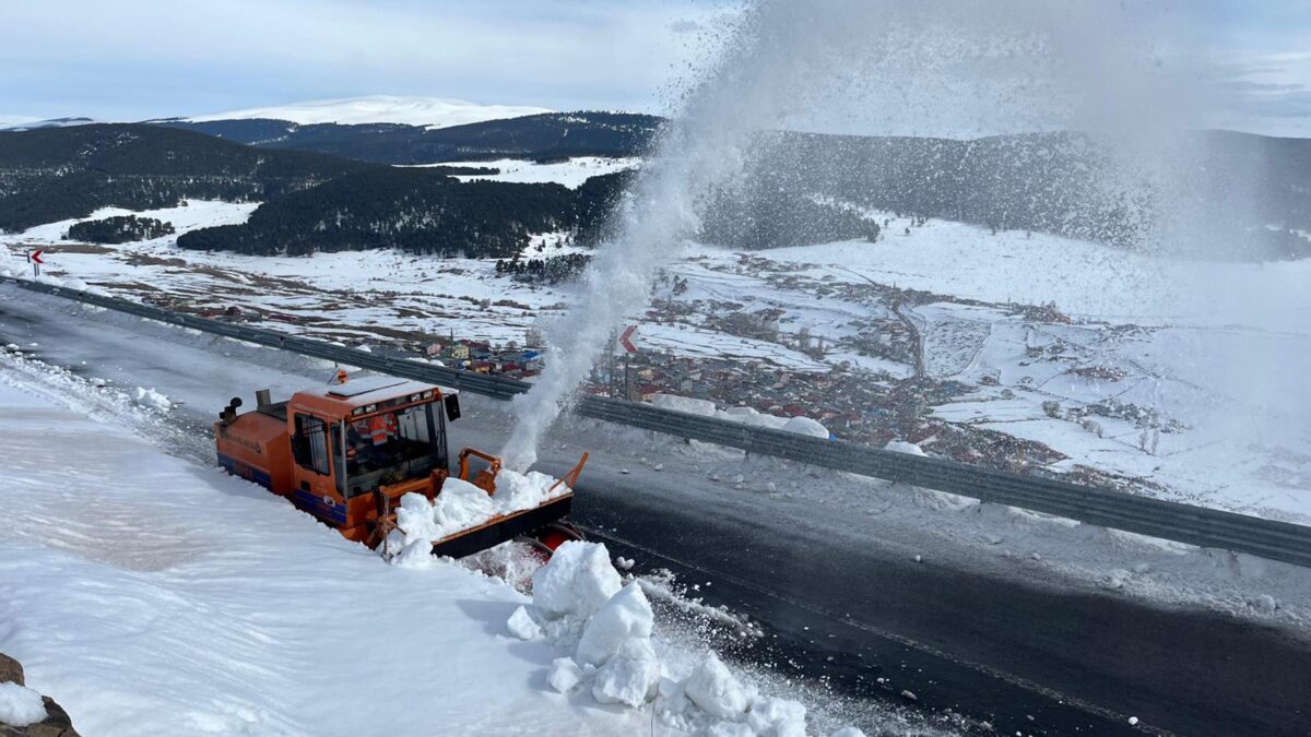Yer yer 3 metreyi bulan kar kütleleri rotatifle savrulurken, greyder ve kepçe yolu temizledi.