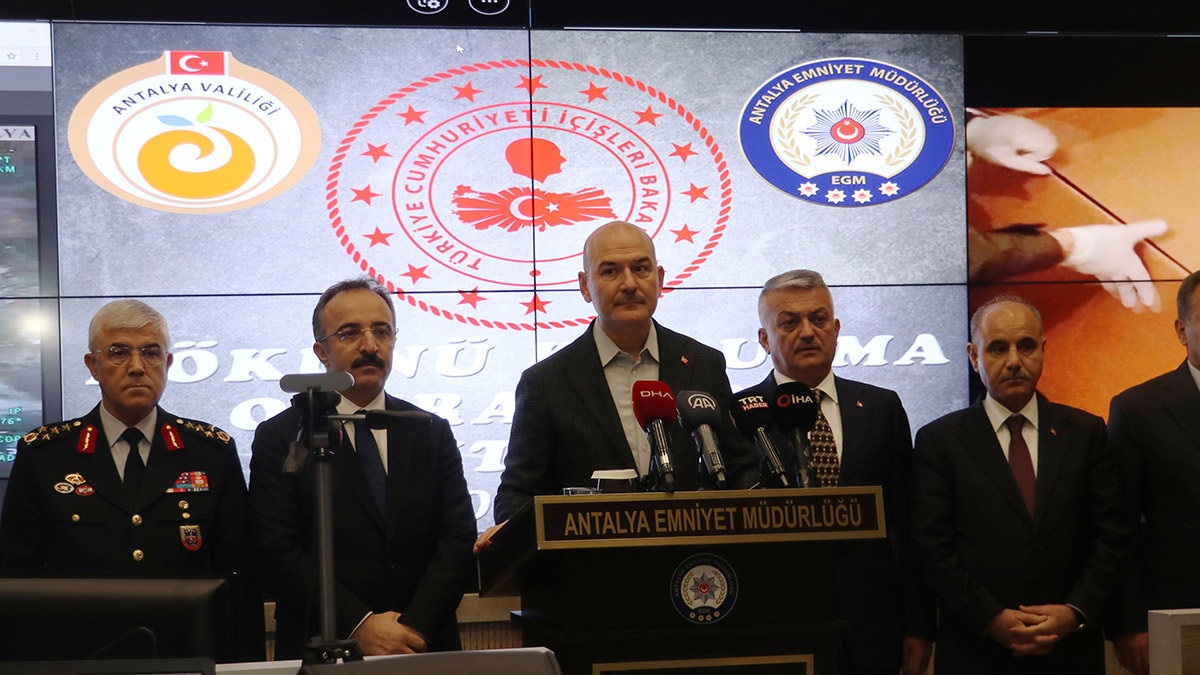 4 ildeki operasyonda gözaltı kararı verilen 260 şüpheliden 241’inin gözaltına alındığını belirten Soylu, Isparta, Ordu ve Erzincan illerine bağlanarak valilerden bilgi aldı. Bakan Soylu’ya basın toplantısı sırasında; Bakan Yardımcısı İsmail Çataklı, Jandarma Genel Komutanı Orgeneral Arif Çetin, Emniyet Genel Müdürü Mehmet Aktaş, Antalya Valisi Ersin Yazıcı, Antalya Emniyet Müdürü Orhan Çevik, Antalya İl Jandarma Komutanı Tuğgeneral Tarık Hekimolğu ve Nartotik Daire Başkanı İbrahim Seydioğulları eşlik etti.
