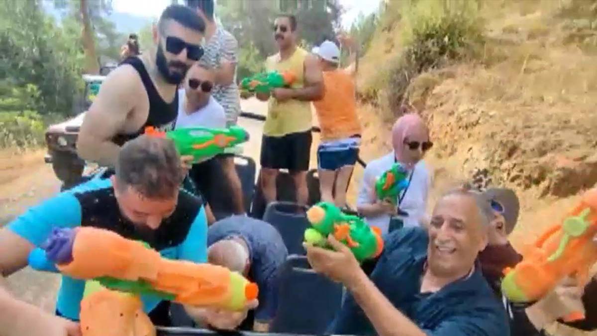Bu arada, kazadan kısa bir süre önce, turistlerin cipte su tabancalarıyla birbirlerini ıslatarak, eğlendikleri son görüntüler ortaya çıktı.