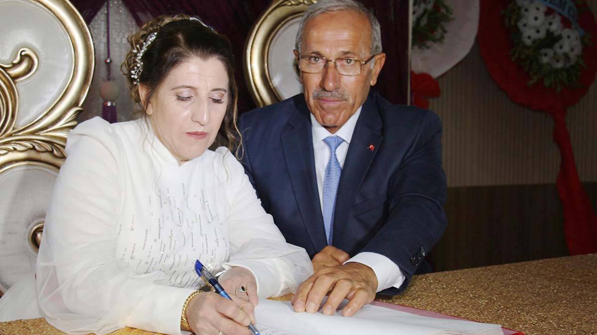 Erzurum’da yaşayan Mübeccel Çakmak Aykul 60 yaşında nikah masasına oturdu; ilk gelinliğini giydi