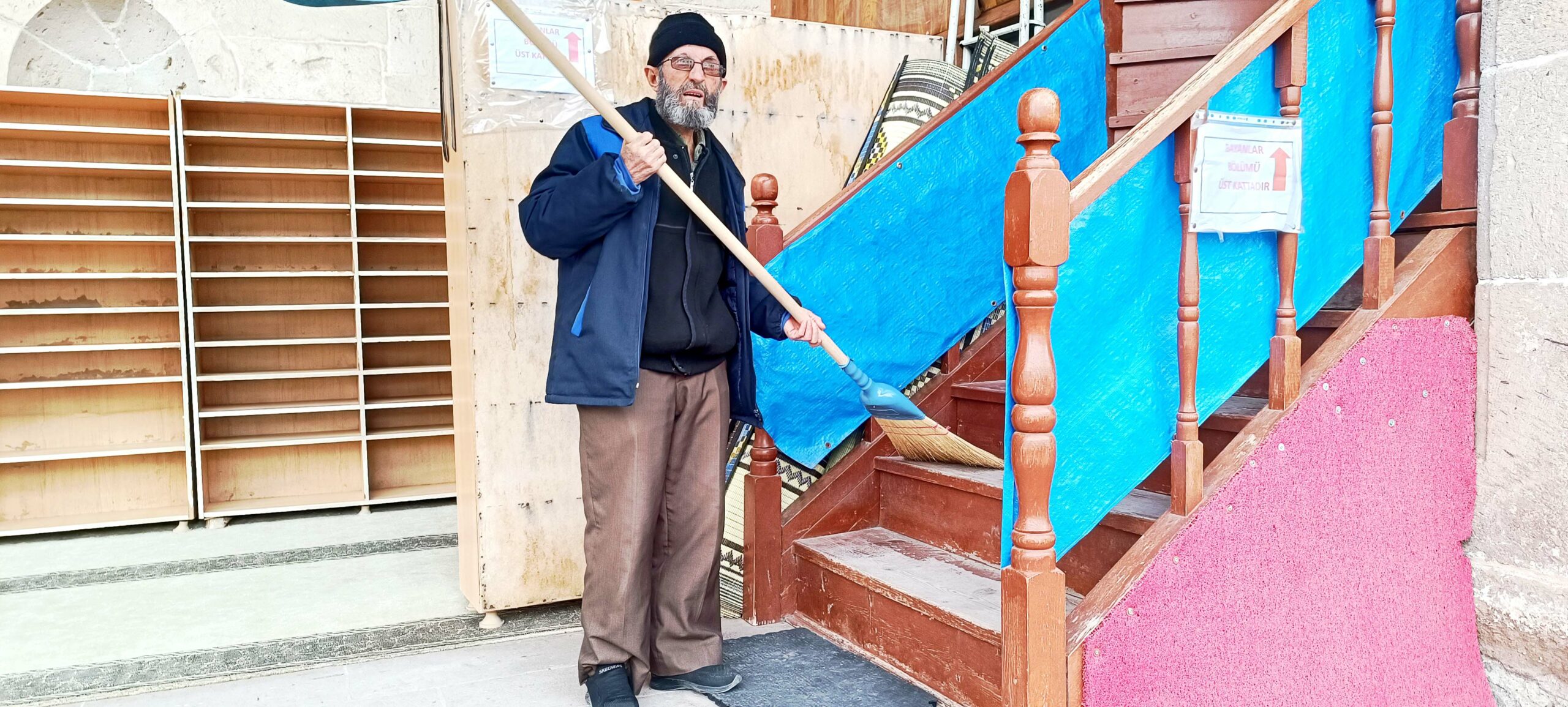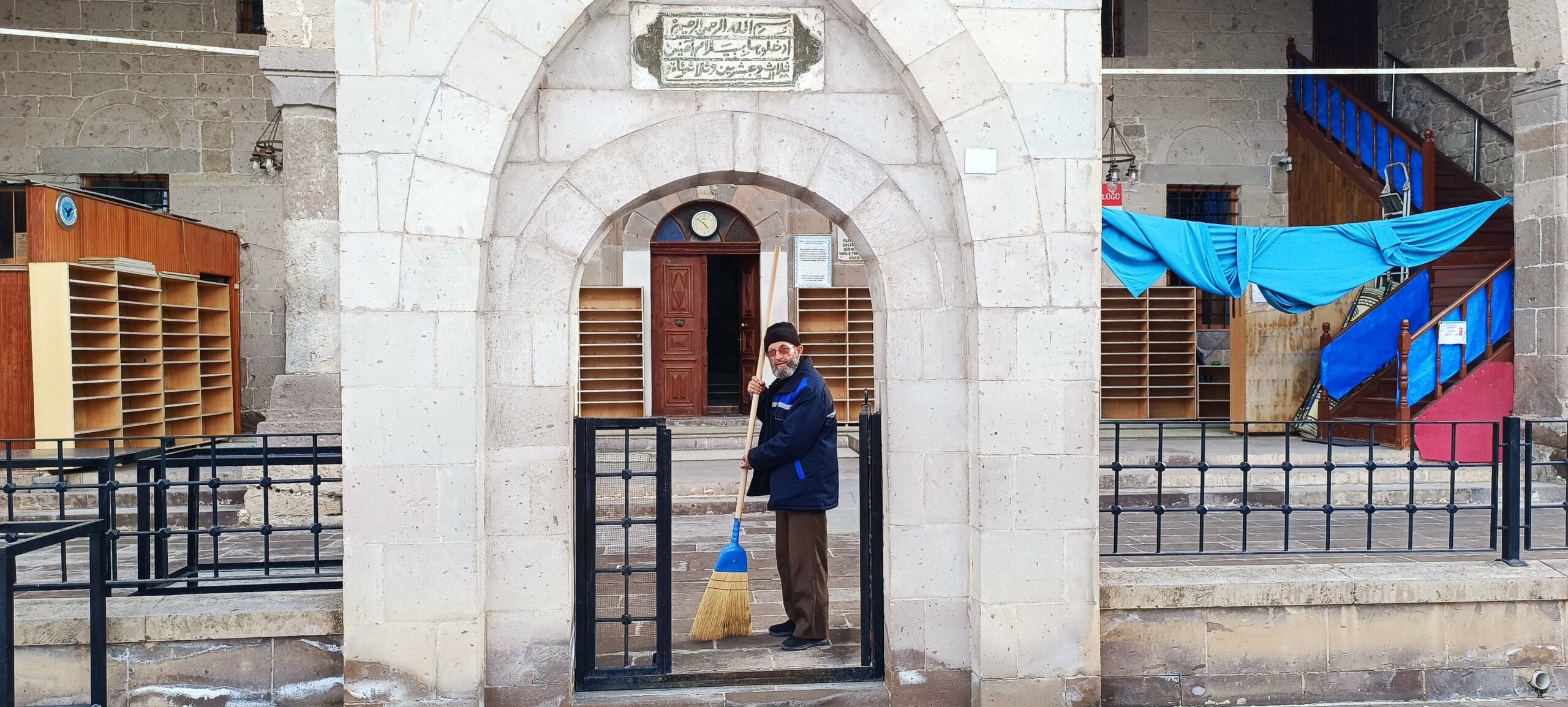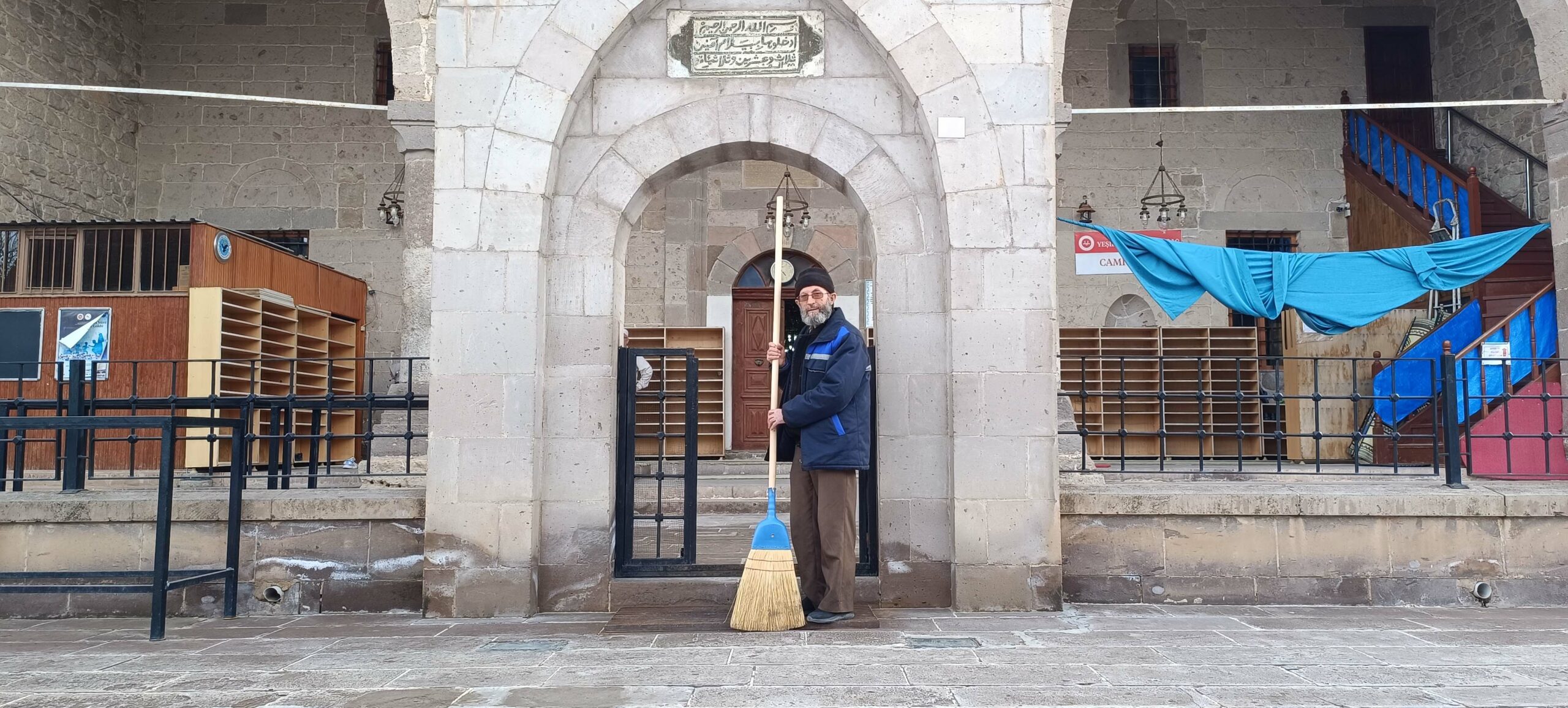 Kayseri'nin Yeşilhisar ilçesinde yaşayan İbrahim Çayabatmaz (59), çalıştığı iş yerinin kapanmasının ardından ilçe merkezinde 1348 yılında yapılan Ulu Cami'nin (Cami Kebir), 18 yıldır gönüllü olarak temizliğini yapıyor.
