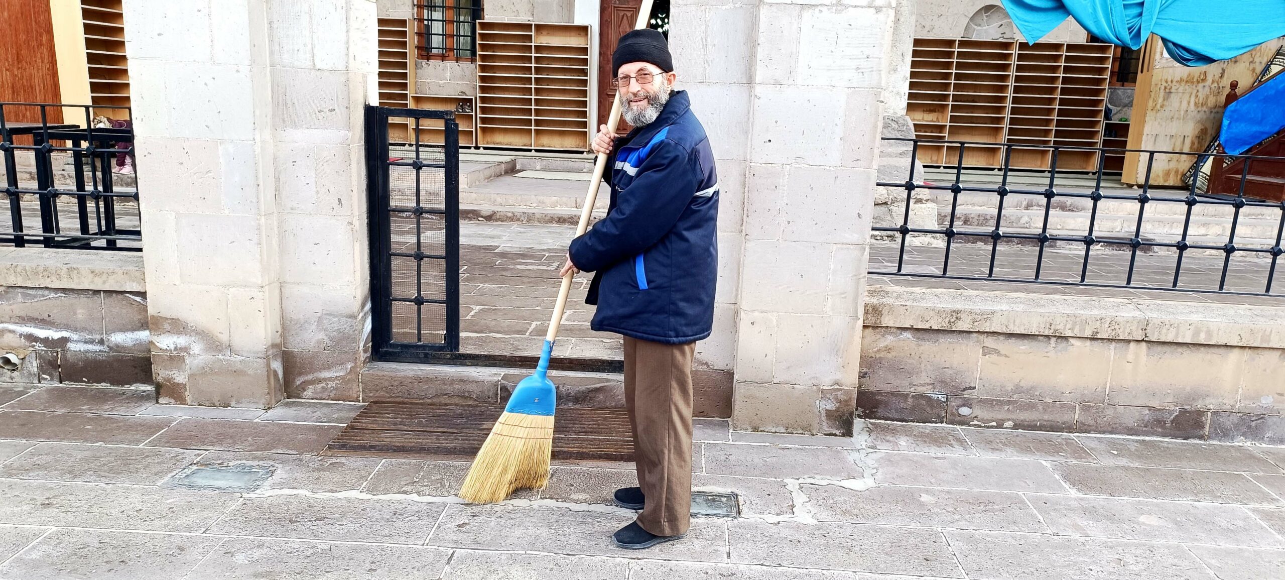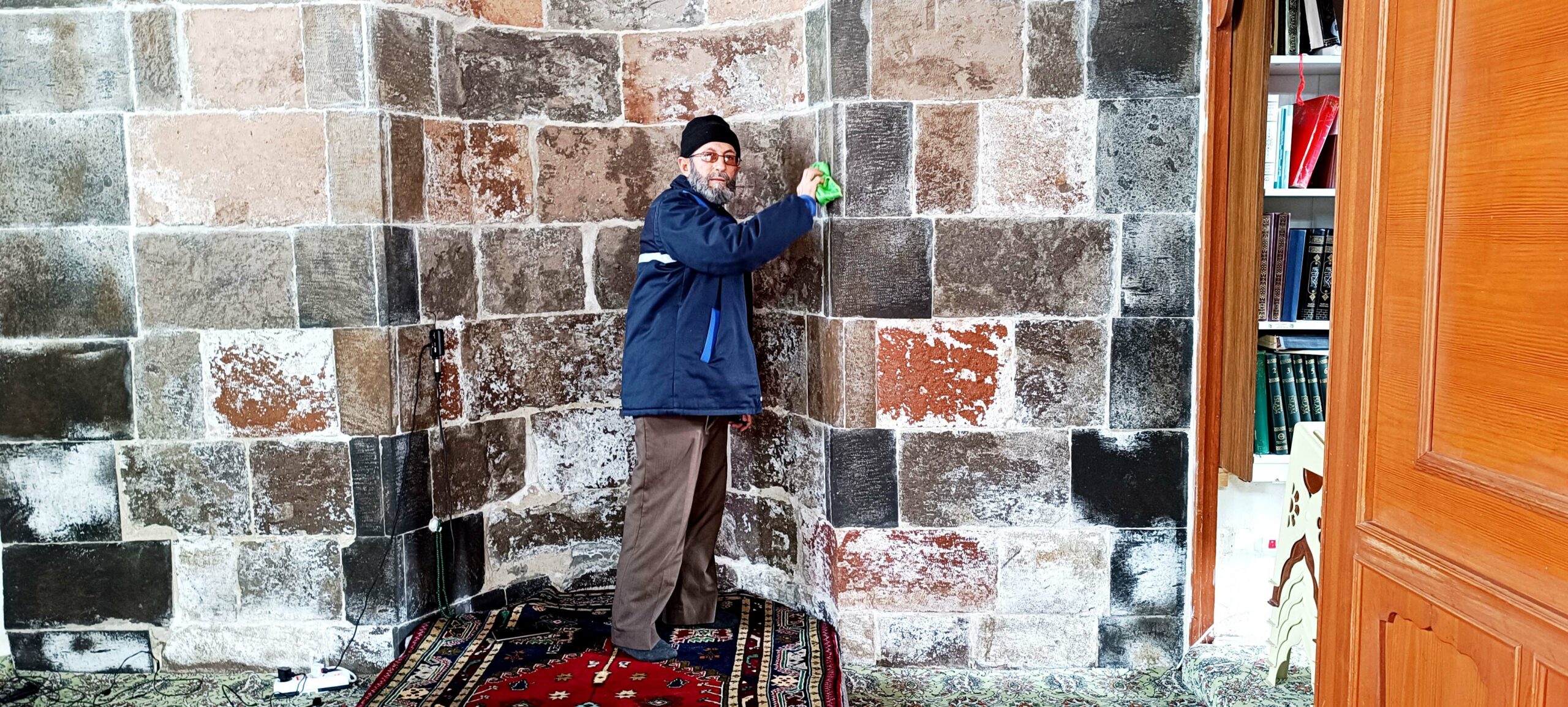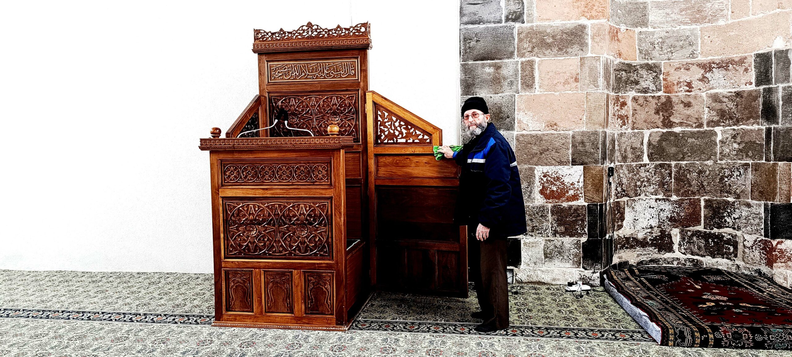 Kayseri'nin Yeşilhisar ilçesinde yaşayan İbrahim Çayabatmaz (59), çalıştığı iş yerinin kapanmasının ardından ilçe merkezinde 1348 yılında yapılan Ulu Cami'nin (Cami Kebir), 18 yıldır gönüllü olarak temizliğini yapıyor.