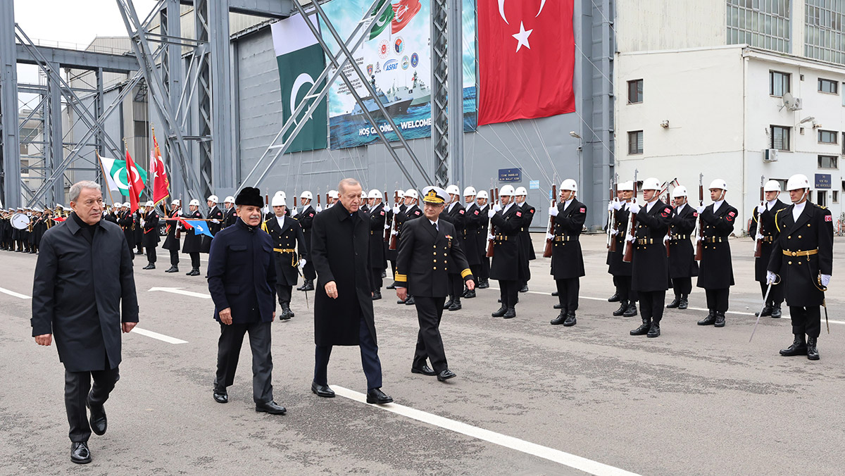 Cumhurbaşkanı Recep Tayyip Erdoğan, İstanbul Tersane Komutanlığı’nda Pakistan MİLGEM Projesi kapsamında inşa edilen üçüncü geminin denize iniş, Açık Deniz Karakol Gemisi Projesi Birinci Gemisi Blok Kızağa Koyma ve İkinci Gemisi Sac Kesim Töreni’ne katıldı. Törene, Cumhurbaşkanı Erdoğan’ın yanı sıra Pakistan Başbakanı Şahbaz Şerif, Milli Savunma Bakanı Hulusi Akar ve iki ülkeden çok sayıda isim katıldı.
