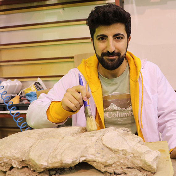 Kaplumbağa fosilini de aynı işlemlerden geçirdik. Sonrasında kimyasal ürünler, yapıştırıcılar ve çeşitli karışımlar uyguladık. Kaplumbağa fosili, kırıklara sahip olduğu için alçı ceket dediğimiz yöntemle çıkardık. Bilim merkezine kadar sağlam bir şekilde getirdik. Sonrasında alçı ceketten çıkarma işlemini gerçekleştirdik ve şu an koruma altına aldık. Fosillerimizi havalı kompresör uçları ile temizliyoruz” diye konuştu.