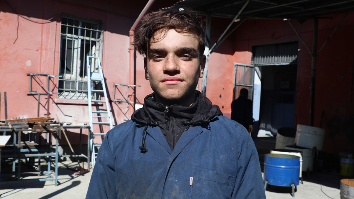 Diyarbakır’da, depremde 8 yakınını kaybeden mesleki ve teknik Anadolu lisesi öğrencisi Veysel Kaya (16), depremzedelere soba yapıyor.