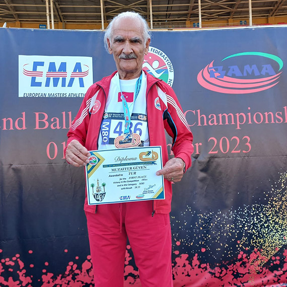 Bursa’da yaşayan emekli kıdemli albay Muzaffer Güven (84), uzun atlama, 3 adım atlama ve kısa mesafe koşularında çok sayıda derece ve madalya aldı. Avrupa ve dünya ikincilikleri bulunan Güven, son katıldığı Balkan Masterler Atletizm Şampiyonası’nda da 3 altın madalyanın sahibi oldu. Dünya şampiyonluğunu hedefleyen Güven, “Madalya aldığım zaman dünyanın en mutlu insanı oluyorum. Madalya demek, Muzaffer demektir” dedi.