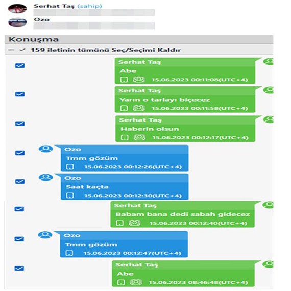 JASAT’ın çalışmasında olayda yaşamını yitiren Serhat Taş’ın incelenen cep telefonunda ‘Brem’ olarak kayıtlı Serkan Aslan’a ‘Babamla gel gittik mevzi almaya’ ve ‘Ozo’ diye kayıtlı bulunan Mehmet Faris Taş’a da ‘Abe yarın o tarlayı biçicez, haberin olsun’ mesajları yazdığı belirlendi. İki kişinin de ‘Tamam’ diye yazdıkları tespit edildi. JASAT’ın hazırladığı tutanaklar ve raporlar Cumhuriyet Başsavcılığı’nca hazırlanan iddianamede yer aldı. İddianamede ‘olay gününden bir gün önce gerçekleşen mesajlaşmanın, silahlı saldırının planı olduğu değerlendirilmektedir’ ifadelerine yer verildi.