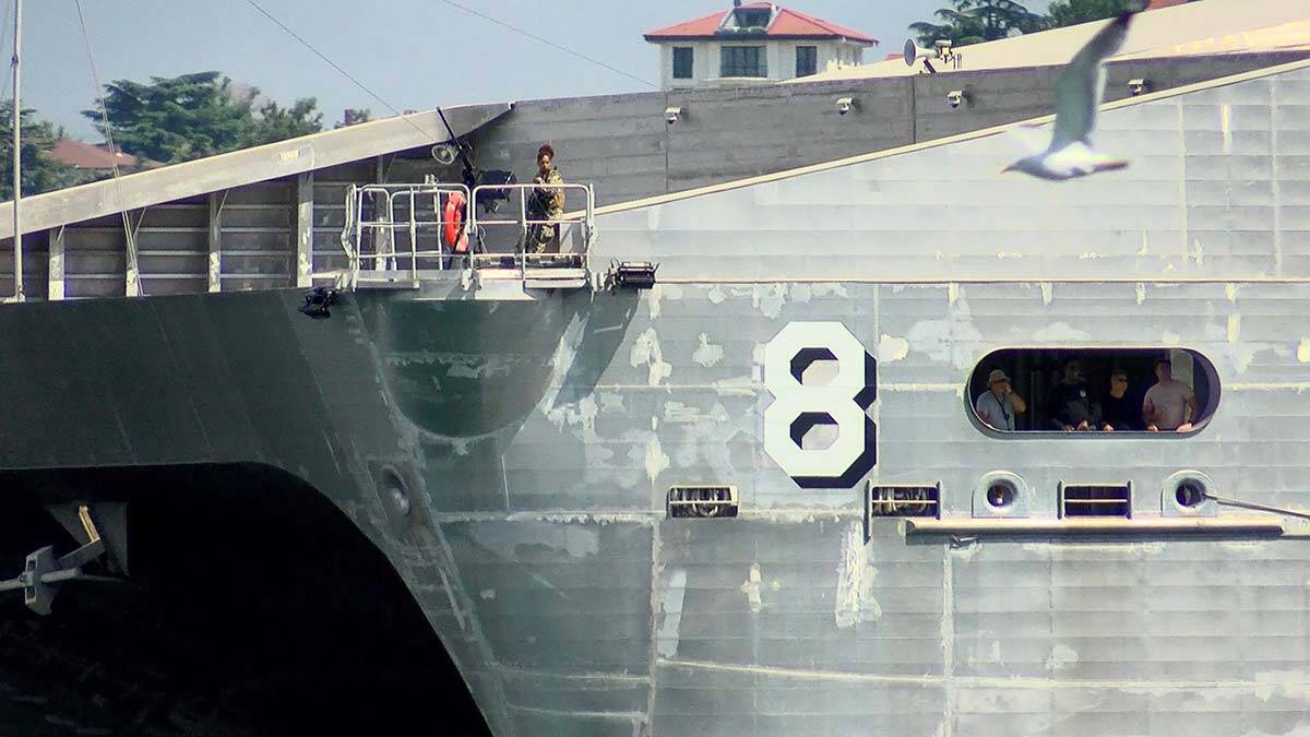 Yaklaşık 1 saatte Fatih Sultan Mehmet köprüsü altına ulaşan geminin ön ve arka bölümünde silahlı askerlerin nöbet tuttuğu görüldü. 1,5 saatte Boğaz geçişini tamamlayan gemi Karadeniz’e açıldı.