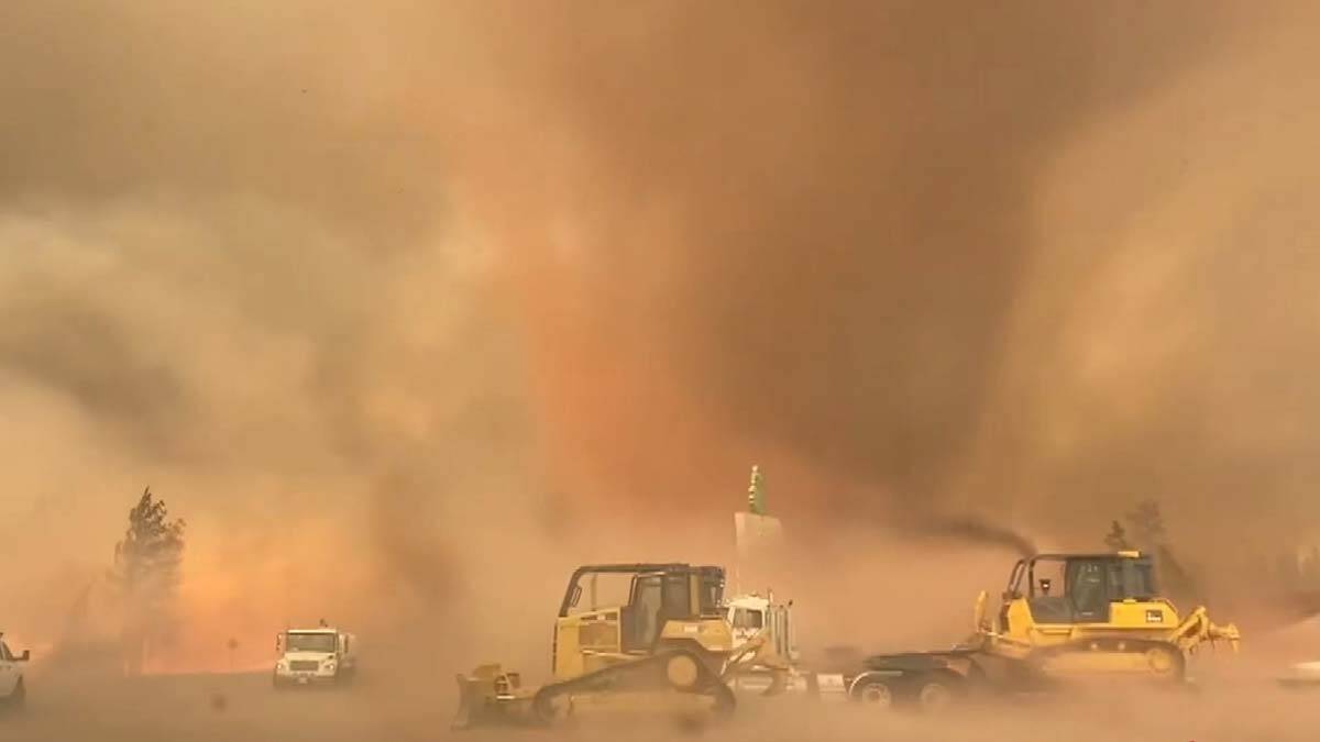 ABD’de alev hortumu aşırı sıcaklar nedeniyle devam eden orman yangınlarını söndürme sırasında yakından görüntülendi
