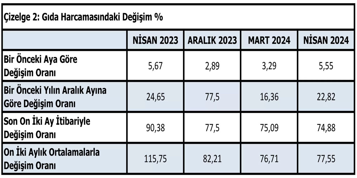 - MUTFAK ENFLASYONU AYLIK %5,55 ON İKİ AYLIK %74,88 YILLIK ORTALAMA %77,55 OLARAK HESAPLANDI.