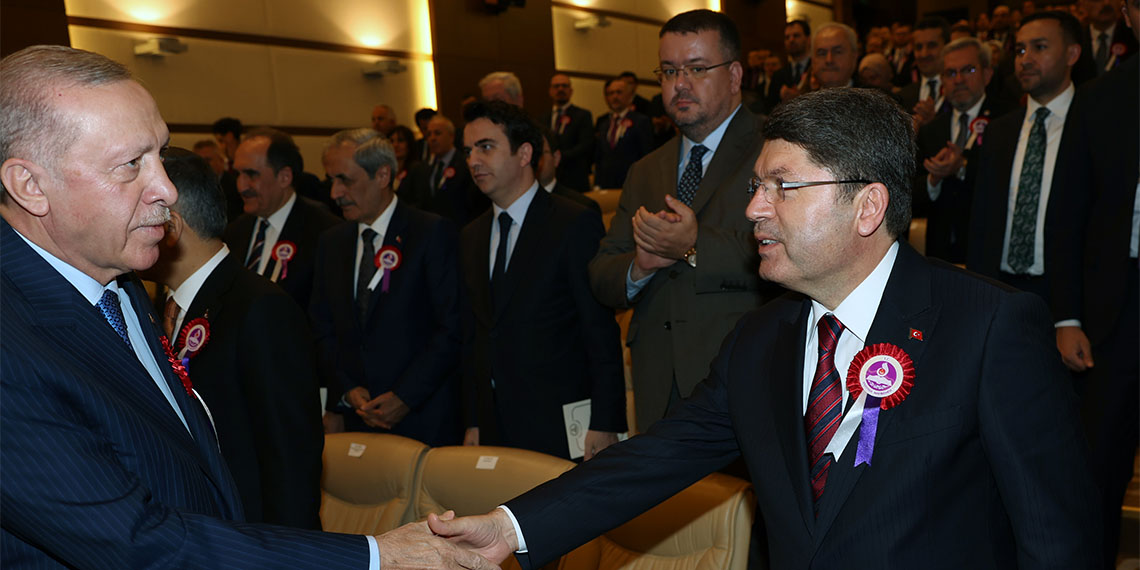 Özkaya’nın konuşmasının ardından yeni üye Ömer Çınar, ant içti. Çınar’a cübbesini Cumhurbaşkanı Erdoğan giydirdi.