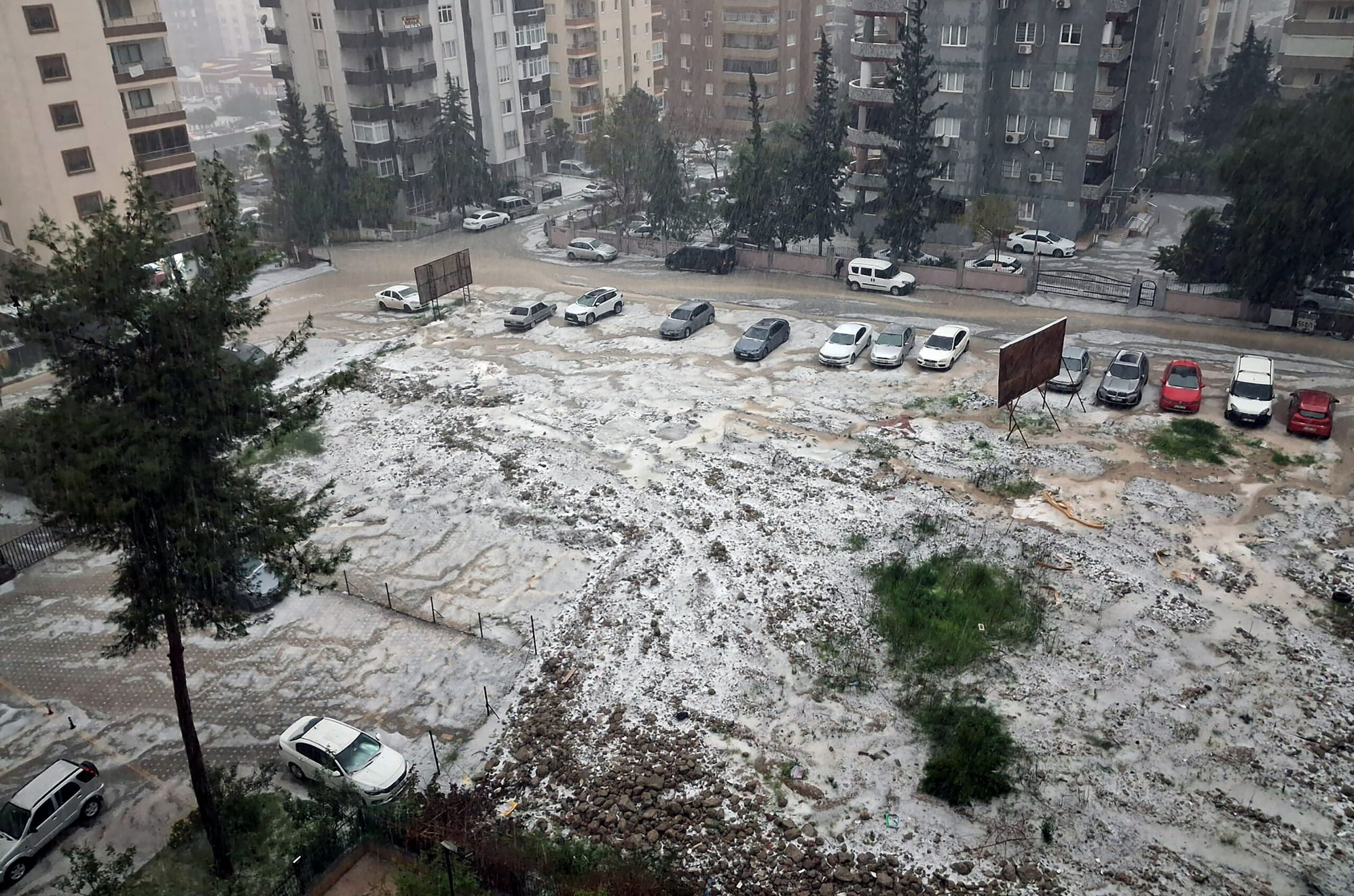 Meteoroloji Genel Müdürlüğü’nün ‘sarı’ kodlu uyarıda bulunduğu kentte aniden başlayan sağanak, ardından dolu yağışına dönüştü. Şiddetli dolu yağışı sonrası cadde ve sokaklar beyaza büründü. Kentte bazı noktalarda yollarda su birikintileri oluştu. Görüş mesafesinin düştüğü kentte, sürücüler de trafikte güçlükle ilerledi.