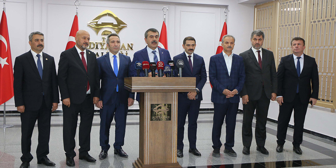Çeşitli temaslarda bulunmak üzere Adıyaman’a gelen Milli Eğitim Bakanı Yusuf Tekin’i havalimanında Adıyaman Vali Vekili Muhammet Tugay, Belediye Başkanı Süleyman Kılınç, AK Parti Adıyaman milletvekilleri Resul Kurt, Mustafa Alkayış ile protokol üyeleri karşıladı. Bakan Tekin ilk olarak Valiliği ziyaret ederek kentin eğitimi hakkında bilgi alıp Afet Koordinasyon ve Değerlendirme Toplantısı’na katıldı. Toplantı sonrası gazetecilere açıklama yapan Bakan Tekin, deprem felaketinin ardından yaraların sarılması için seferber olunduğunu ifade etti.