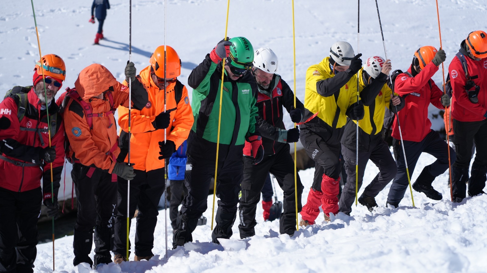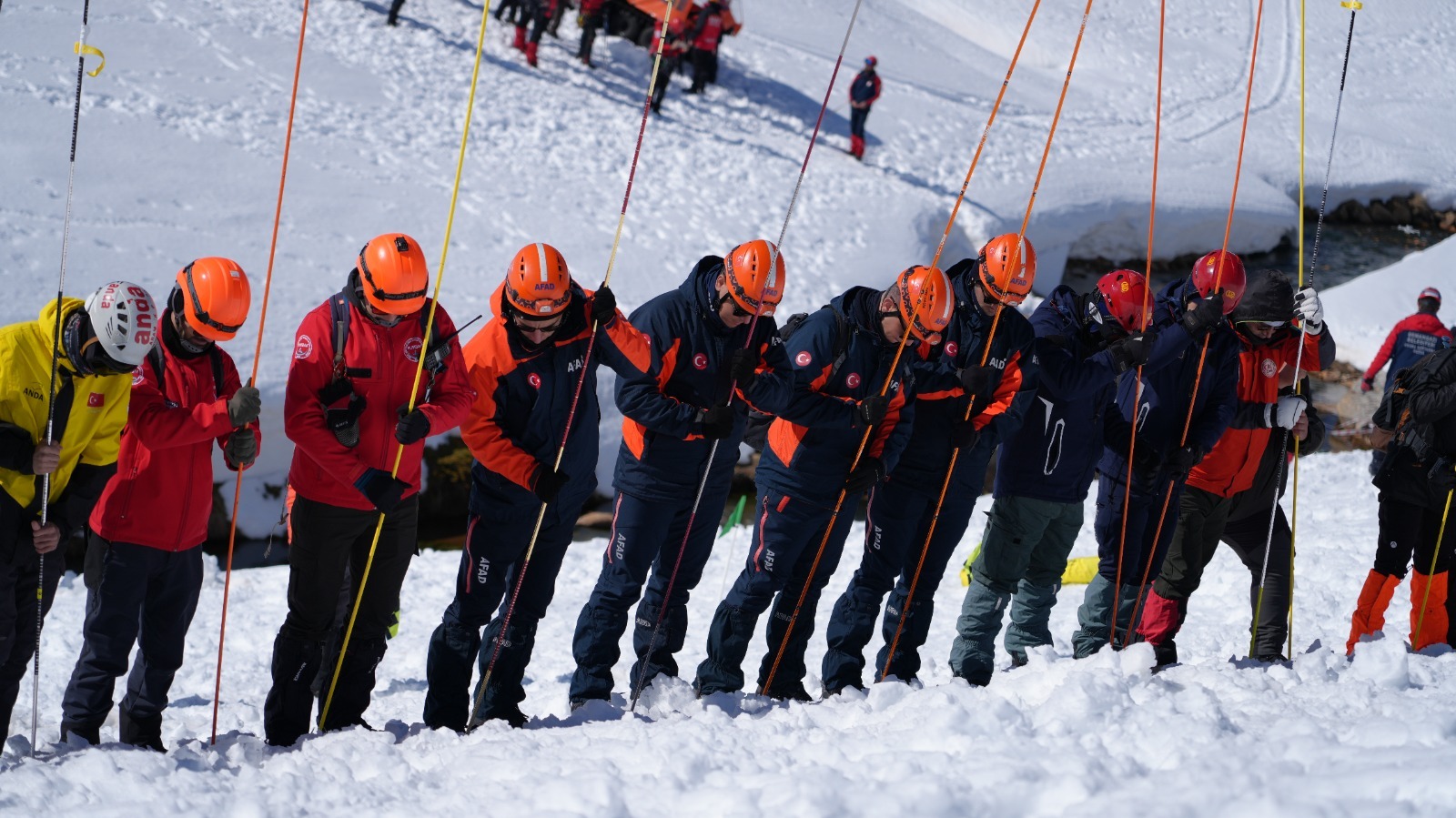 AFAD koordinasyonunda düzenlenen ve 31 farklı ekipten 150 personelin katıldığı tatbikatta, senaryo gereği çığ altında kalanlar için ekipler kar kütlelerini adeta didik didik aradı.