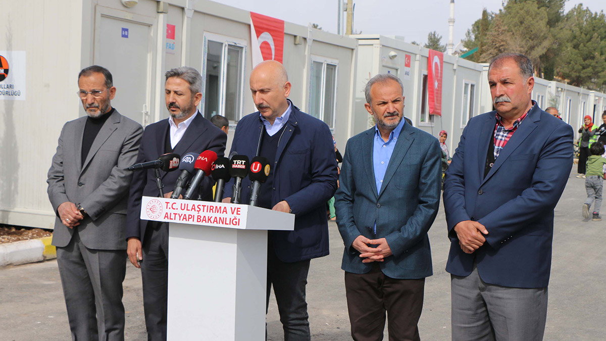 Adıyaman’da şu anda 50 bin 763 çadırda 203 binin üzerinde vatandaşın barındığını da dile getiren Bakan Karaismailoğlu, “Adıyaman’da 2 milyon 193 bin metrekarelik alanda 17 bin 907 kapasiteli 20 ayrı konteyner kent kurma çalışmalarımız tüm hızıyla sürüyor. Şu ana kadar 1044 konteyner kurduk ve 387 tanesini de kurulmak üzere sahaya indirdik. Şu an itibariyle 300 ailemizi konteynerlere yerleştirdik. Onların bir nebze olsun normal hayatlarına dönmeye başlamaları bizlere de büyük güç veriyor. İnşallah bu sayı hızla artacak ve Adıyaman’da hayatın normal akışına daha da hızlı dönmeye başladığına şahit olacağız” dedi.