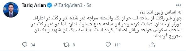 Afganistan İçişleri Bakanlığı Sözcüsü Tariq Arian, iki roketin ise yerleşim bölgesine isabet ettiğini belirterek Kabil’de 1 kişinin öldüğünü ve 2 kişinin yaralandığını açıkladı.