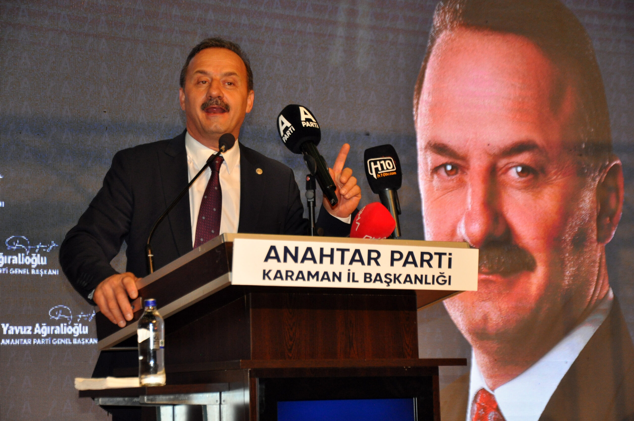 Anahtar Parti Genel Başkanı Yavuz Ağıralioğlu, Karamanoğlu Mehmetbey Üniversitesi 15 Temmuz Konferans Salonu’nda partililerle bir araya geldi. Partililere seslenen Ağıralioğlu, iktidara geldiklerinde yapacaklarını anlattı. Ağıralioğlu, “Cumhurbaşkanı yardımcılıkları, danışmanlıkları dahil bunların hepsi yeni sistemde ortadan kalkacak. Partili Cumhurbaşkanlığına son veriyoruz. Bakanlar, bakan yardımcılıkları üzerinden meclise karşı sorumlu olamayan bakanlara da bakan yardımcılıklarını müsteşarlar değiştirerek onlara da son veriyoruz. Bakan yardımcılıkları iptal, müsteşarlıklar geliyor. Cumhurbaşkanlığı Strateji Planlama Başkanlığı iptal. Devlet Planlama Teşkilatı’nı bütün kuvvetiyle kudretiyle yeniden kuruyoruz. Meslekten olmayan valilerin istisna olanları hariç hepsi geri çekilecek. Meslekten olmayan diplomatlar geri çekilecek. Yabancı dil bilmeyen bütün diplomatlar, geri çekilecek. Meslek memurluğu diye bir şey yeniden başlayacak. Kamu İhale Kanunu Avrupa standartlarında yeniden kurgulanacak. Kamu İhale Kanunu değişecek. Partiler Kanunu değişecek. Meclisin bütçe hakkı olacak. Bütçe hakkı olmayan meclis, meclis değildir. Sayıştay raporları yayınlandığı gibi kamuoyuyla paylaşılacak, sonuç doğuracak şekilde yargıyla irtibatlandırılacak.” diye konuştu.