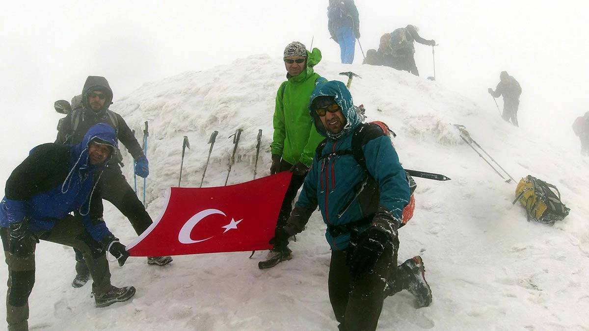 Türk dağcılar ve rehberler, hızı saatte zaman zaman 80 kilometreye ulaşan ve hava sıcaklığının sıfırın altında 20 dereceye kadar düştüğü Ağrı Dağı’nın zirvesinde bayramlaştı.