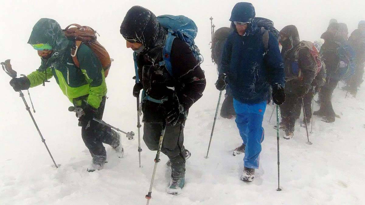 Ağrı Dağı’na tecrübeli rehberler eşliğinde tırmanıldığında sorun çıkmayacağını savunan ve bayramın ilk günü 159’uncu zirve tırmanışını gerçekleştiren Tekin, “Şapka buzullar yılın 12 ayı buzla kaplıdır. Temmuz ve ağustos aylarında bile zirvede bazen bizim gibi tipiye tutulabilirsiniz. Zirvede adeta kıyamet kopuyordu. Hava buz gibi soğuk, kar yağıyor, tipi savuruyordu. Yanımızdaki arkadaşımızı güçlükle görebiliyorduk. Fırtına şiddetini artırdığında ayakta bile durmak mümkün değildi. Çok şükür kazasız, belasız ekibi güvenli biçimde önce ana kampa daha sonra ilçe merkezine getirmeyi başardık” diye konuştu.
