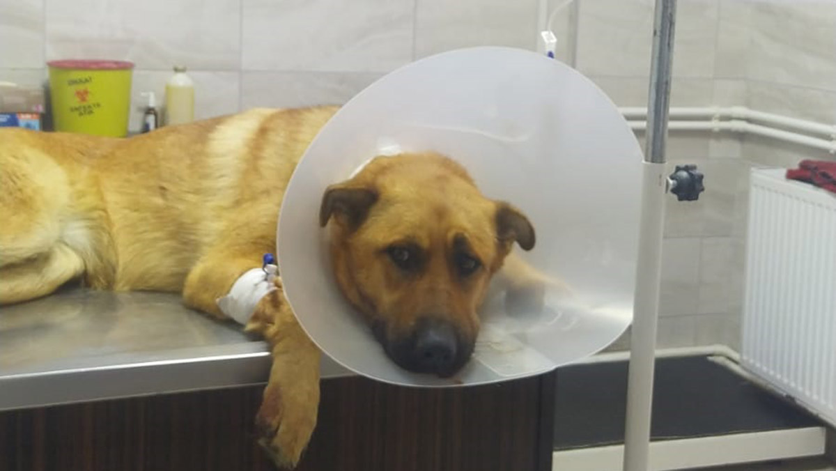 “Veterinerimiz yaptığı incelemede olayın gece saatlerinde olduğunu tahmin ediyor. Bir cani savunmasız köpeğin ağzının içine tüfeği yerleştirerek ateş ediyor. Dili kopan köpeğin ağzının içinde çok sayıda saçma tespit etti. Şu an yoğun bakımda. Kopan dilinin kalan kısmı dikildi. Ağzının içindeki saçmalara müdahale edilemiyor. Yaşam savaşı veriyor. Hayatta kalırsa bir daha normal beslenme yapamayacak. Su bile içemeyecek.’’