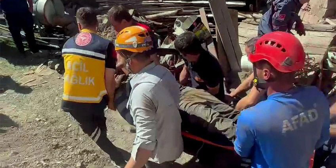 Yozgat’ın Sorgun ilçesi Gevrek köyünde ahırda güçlendirme çalışması yaparken oluşan göçükte mahsur kalan Nurettin Pusmaz (37), ekipler tarafından kurtarıldı.