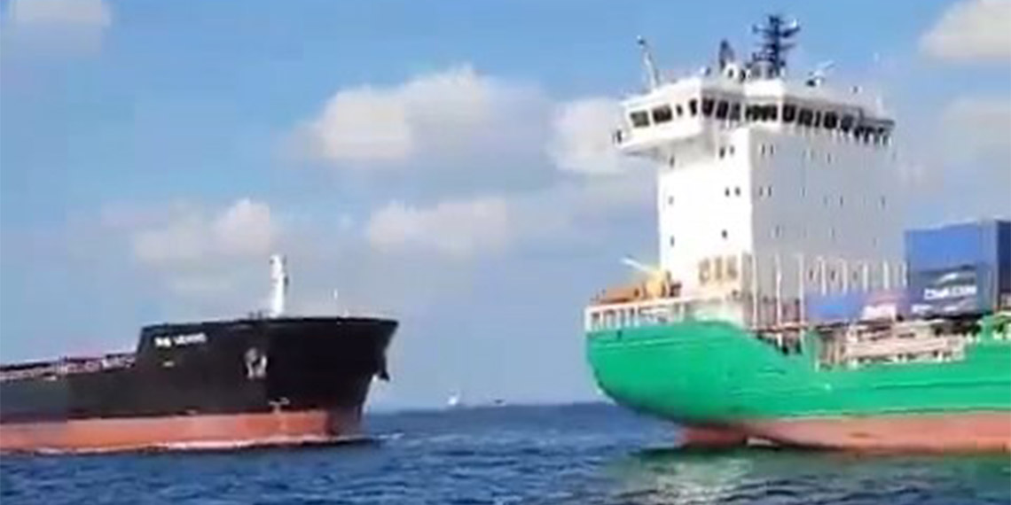 Görüntülerde 228 metre uzunluğundaki ‘New Legent’ isimli kuru yük gemisi 141 metre uzunluğundaki ‘Elbsun’ isimli demirli duran konteyner gemisinin arka kısmında yaklaşarak çarpma anı bir vatandaşın cep telefonuna kamerasına yansıdı. Kuru yük gemisinin çarpmasından sonra konteyner gemisinin ileriye doğru sürüklendiği de görülüyor.